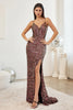 Step into the spotlight with the captivating Cinderella Divine CH127 gown. Its radiant sequins twinkle under the lights, creating an unforgettable presence. The fitted silhouette accentuates your curves, while the sheer insets add a touch of allure. The plunging V-neckline and spaghetti straps flatter your décolletage, and the cutout back adds a hint of intrigue. The lace-up tie closure ensures a perfect fit, and the full-length sheath skirt with a high leg slit and sweeping train exudes elegance and sophistication. Whether you're attending a prom, pageant, or evening party, this stunning gown will make you the belle of the ball.