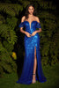 Embrace the ethereal beauty of the Cinderella Divine CH167 gown. This masterpiece is a symphony of iridescence, captivating all eyes with its glittering accents and intricate embroidery. The off-shoulder neckline, featuring a plunging sweetheart inset and delicate ruffled drapes, adds a touch of elegance and allure. A striking slit reveals a sheath skirt that cascades into a sweeping train, creating a breathtaking silhouette. Illuminate any event with your presence as you glide in this radiant creation, leaving a lasting impression of timeless glamour.