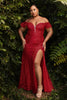 Ladivine Off Shoulder Fringe Prom Dress Beaded Slit Evening Gown CC324 Black/Nude