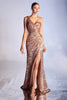 CM382 Ladivine Rose Gold Strapless Beaded Evening & Prom Dress Rose Gold
