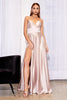 Indulge in the captivating allure of the Cinderella Divine CJ523 satin gown. This exquisite masterpiece commands attention with its plunging sweetheart neckline adorned with a sheer inset panel. The princess-cut bodice is accentuated by delicate spaghetti straps that flow gracefully to a mid-open back. The seam-tailored wide waistband defines a fitted midriff, while the A-line skirt captivates with a high side slit that elegantly concludes with a sweep train finish. Illuminate any event with your presence in this spectacular creation that effortlessly combines allure and sophistication.