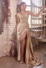 Ladivine Off Shoulder Fringe Prom Dress Beaded Slit Evening Gown CC324 Black/Nude