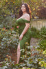 Indulge in pure, sultry elegance with this Cinderella Divine masterpiece. Crafted to perfection, this gown exudes sophistication and allure. Its sleek silhouette is accentuated by corset boning, enhancing your curves and creating a flattering hourglass figure. The off-shoulder neckline features draping straps that cascade over your shoulders, forming an enchanting display of grace. The fitted bodice is adorned with a lace-up detailed back, adding a touch of sophistication. As the sheath skirt flows gracefully into a floor-grazing hemline, a daring slit opens up, revealing a hint of skin for an extra touch of allure. Whether it's a standout prom dress, a captivating bridesmaid attire, a Mother of the Bride gown, or an enchanting evening dress, this piece is designed to leave a lasting impression on any special occasion.