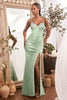 Embrace the allure of this stunning fitted gown from Cinderella Divine. The figure-hugging silhouette embraces your curves, while the boned bodice provides both structure and support for a glamorous appearance. Sparkle and shimmer come to life with the embellished edges of the bust cups, adding a touch of brilliance to your style. The leg slit allows for a subtle display of skin without compromising the timeless elegance of the dress. The gathered waistline adds a hint of fullness in just the right places, and the luminescent semi-stretch fabric infuses a touch of glamour into your overall look. Whether you're attending prom, a pageant, a wedding, or any other formal event, this fitted beaded gown with slit will turn heads and leave a lasting impression.