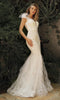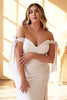 Step into the spotlight with Cinderella Divine's CD944WC bridal dress. Crafted from luxurious stretch satin, this gown effortlessly hugs your body, showcasing your curves with flattering pleats. The off-the-shoulder neckline exudes sophistication with its elegant shoulder tie straps. A captivating side slit adds a touch of allure, providing a tantalizing peek at your leg. The dress culminates in a graceful sweep train, creating a breathtaking silhouette that will make you the epitome of elegance and style on your special day.