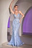 Elevate the drama with matching gloves and a graceful long drape at the side that creates a showstopping effect. The gown's sheath silhouette seamlessly accentuates your curves and flows effortlessly into a full-length hemline complete with a sweep train that adds a touch of glamour. The daring thigh-high slit adds a seductive edge to this enchanting ensemble.