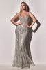 Step into the spotlight and radiate elegance in this captivating evening gown by Cinderella Divine. The form-fitting bodice is adorned with intricate ruched detailing that adds depth and dimension to the glittered fabric. The off-shoulder sweetheart neckline exudes charm, while the mid-open back features a convenient zip-up closure for ease of wear.