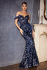 Indulge in the timeless glamour of the Cinderella Divine Off-Shoulder Floral Print Gown with Corset. This captivating ensemble features a black tulle overlay adorned with a delicate rose floral motif, adding a touch of romance to your special occasion look. The boned bodice ensures a flattering fit, accentuating your silhouette with sophistication and grace. As you twirl on the dance floor, the full skirt comes to life, creating a dreamy silhouette that's perfect for any special occasion. Embrace a hint of allure with the leg slit, allowing you to showcase your confidence and movement. More than just an outfit, this gown is a celebration of timeless beauty and refined style. Step into the spotlight and let this exquisite creation be the epitome of your elegance.