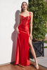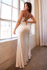 One of the standout features of this gown is its high slit, which not only adds a hint of allure but also elongates your legs for a captivating effect. The harmonious blend of sophistication and glamour makes this dress the perfect choice for any special occasion that demands refined style.