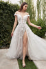 Ladivine Off Shoulder Fringe Prom Dress Beaded Slit Evening Gown CC324 Black/Nude