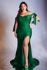 Immerse yourself in the enchanting realm of Cinderella Divine with the CD943C gown. This exquisite masterpiece exudes an aura of royalty, captivating all who lay eyes upon it. The off-the-shoulder neckline, adorned with elegant bow straps, adds a touch of sophistication. The mermaid skirt showcases intricate ruching on the midrise back, accentuating your curves with grace. As the skirt opens up with a high slit, it flows into a mesmerizing train that trails behind you, leaving a trail of enchantment in its wake. Step into the realm of enchantment and embrace the opulent charm of Cinderella Divine CD943C.