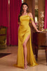 Step into the spotlight with this captivating one-shoulder draped satin gown. Its elegant silhouette and luxurious fabric will make you feel like a true princess. The single shoulder design with off-the-shoulder drape adds a touch of drama, while the pleated waistline cinches in your figure for a flattering fit. The soft satin fabric moves gracefully with you, creating a mesmerizing effect. Turn heads with the thigh-high leg slit that adds a hint of allure. Perfect for any special occasion, this stunning gown will make you the center of attention.