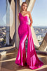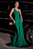 Indulge in the opulence of this exquisite stretch satin gown. Its fitted silhouette is designed to showcase your every curve, ensuring an alluring and sophisticated appearance. A gathering detail at the waistline and side hips completes the look with timeless finesse. The chic one-shoulder style not only adds a touch of glamour but also provides the perfect canvas for showcasing your favorite earrings and bracelet. Whether you're attending a special occasion or just stepping out for a memorable date night, this dress promises to make a statement with its classic allure.