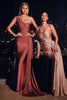 CM382 Ladivine Rose Gold Strapless Beaded Evening & Prom Dress Rose Gold