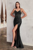 Ladivine Off Shoulder Fringe Prom Dress Beaded Slit Evening Gown CC324 Black/Nude