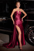 Embrace the ethereal elegance of a goddess in this captivating Cinderella Divine fitted strapless satin dress with slit. Its meticulously crafted silhouette flatters your natural curves, while the deep V-neckline and gathered bodice accentuate your décolletage and enhance your feminine allure. The luxurious satin fabric drapes impeccably over every curve, showcasing your silhouette with grace. An asymmetrical sash cascades elegantly down one side, adding a touch of whimsy and cleverly directing focus to your slender waist. The gathered butt detail introduces a subtle touch of drama, instilling confidence for a grand entrance wherever you go. Get ready to captivate hearts as you glide across the floor, revealing a seductive leg slit that adds a flirty and alluring touch to your overall look.