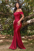 Ladivine Off Shoulder Fringe Prom Dress Beaded Slit Evening Gown CC324 Black/Nude