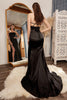 Ladivine Off Shoulder Fringe Prom Dress Beaded Slit Evening Gown CC324 Black/Nude