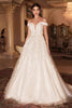 Embrace regal elegance in the Cinderella Divine A1027W gown. This off-the-shoulder masterpiece features exquisite embroidery that shimmers under the lights. The voluminous A-line silhouette exudes grandeur, while the flowing chapel train creates a dramatic and unforgettable entrance. Crafted from luxurious tulle, this gown flows effortlessly, ensuring a graceful and captivating presence. Perfect for making your wedding day or any special occasion a moment to cherish forever.