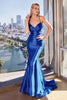 Step into this enchanting Cinderella Divine mermaid gown and let your radiance shine. Crafted from shimmering stretch satin, this dress is a masterpiece of light and movement. The chic V-neckline frames your décolletage with confidence, while the low open lace-up corset back adds a touch of drama. The fitted mermaid silhouette hugs your curves, creating a captivating hourglass figure that will turn heads wherever you go. Whether it's a formal event or prom, this sparkling creation will make you the embodiment of radiant beauty and magnetic charm. Let the world be captivated by your elegance as you step into this magical gown.