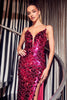 Indulge in the epitome of glamour and allure with this exquisite fitted paillette gown. Crafted to enhance your natural beauty, this sexy and confident design embraces every curve. The fitted silhouette gracefully hugs your figure, while the V-neckline with thin straps adds an elegant and alluring touch. The lace-up corset open back is a flattering and eye-catching detail that accentuates your back. The leg slit provides a perfect blend of sophistication and sultriness, allowing you to make a statement without sacrificing style. With this gown, your entrance at any event is destined to be unforgettable, leaving a lasting impression of sophistication and style.