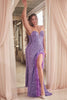 Step into the spotlight with this captivating strapless sequin gown from Cinderella Divine. Its fitted silhouette gracefully accentuates your curves, while the strapless sweetheart neckline exudes elegance. The fully sequined fabric shimmers and sparkles, illuminating the night. A touch of extra flair is added with the leg slit, elegantly lined with faux feathers. The lace-up corset back provides a secure and beautiful finishing touch. Whether you're attending prom, a special night out, or any other formal occasion, this strapless sequin gown is sure to turn heads and leave a lasting impression.