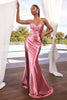To amplify the statement, this glamorous gown boasts a playful side leg slit intricately detailed with more captivating beading. This adds the perfect touch of glamour and intricate detailing. Our strapless satin fitted gown is not just about looking divine; it's about feeling like a goddess and commanding the spotlight.