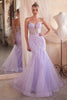Indulge in the captivating allure of this stunning strapless mermaid gown. Its exquisite deep-plunging illusion neckline adorned with a delicate sequin floral vine motif creates an ethereal and alluring effect. The layered glitter tulle skirt cascades down in a mesmerizing display of shimmering elegance, adding a touch of divine enchantment to your every move. The mermaid silhouette accentuates your curves, while the sweetheart neckline beautifully flatters your décolletage. Whether you're attending prom, a formal event, or a special occasion, this strapless mermaid gown is sure to make a bold and unforgettable statement.
