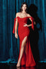 Step into the spotlight and become an irresistible showstopper with this captivating ensemble from Cinderella Divine. The vibrant formal evening gown features a flattering form-fitting silhouette that highlights your statuesque figure. The sweetheart neckline is gracefully complemented by off-shoulder bow straps, adding a touch of elegance. Delicate ruching adorns the fitted bodice and back, creating subtle texture that enhances your allure. The full-length skirt boasts a daring thigh-high slit, exuding confidence and charm. The horsehair hem sweep train adds a final touch of sophistication, ensuring you radiate grace and glamour at any event.