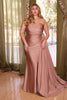 Indulge in the opulence of this exquisite Cinderella Divine gown, meticulously crafted from a luxurious stretch satin fabric. The fitted silhouette is designed to showcase and accentuate your every curve, ensuring an alluring and sophisticated appearance. Elevating the elegance, a gathering detail at the waistline and side hips completes the look with timeless finesse. The chic one-shoulder style adds a touch of glamour and provides the perfect canvas for showcasing your favorite earrings and bracelet, allowing you to create an effortlessly polished ensemble. Whether you're attending a special occasion or just stepping out for a memorable date night, this dress promises to make a statement with its classic allure.