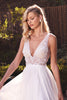 Step into a realm of enchantment with the Cinderella Divine Bridal TY12 gown. This exquisite creation is adorned with intricate beadwork and delicate embroidered details, creating a vision of timeless elegance. The plunging V-neckline exudes sophistication, while the deep V open back adds a touch of allure. Embroidered ornaments delicately accentuate the gown, enhancing its overall charm. The A-line skirt flows with grace and beauty, flaring into a mesmerizing sweeping train that adds a touch of grandeur to your bridal ensemble. Embrace the magic of this enchanting gown and make your wedding day an unforgettable fairy tale.