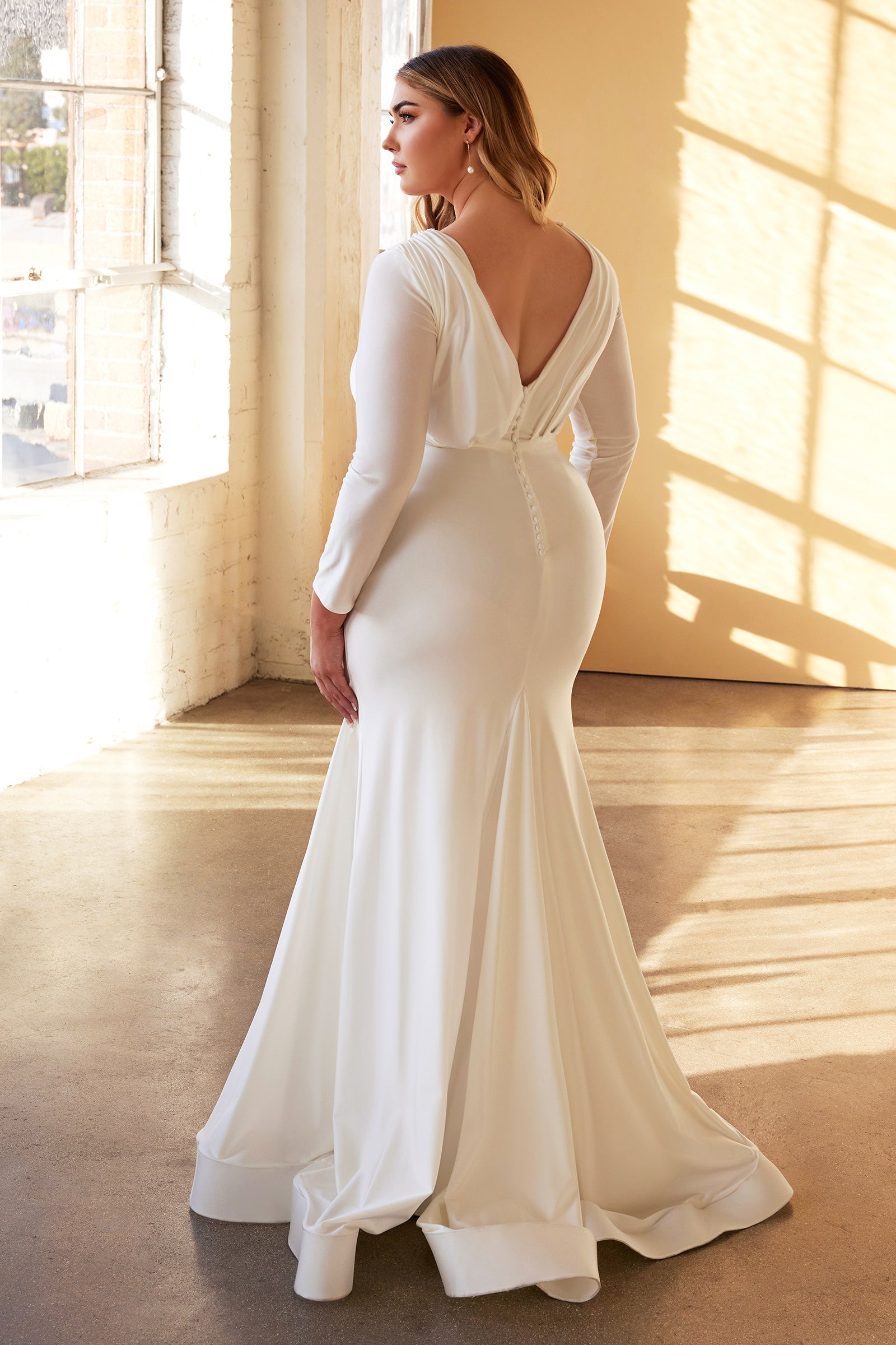 Elevate your bridal style with the exquisite Cinderella Divine CD0169C wedding gown. This extra-curvy masterpiece boasts a flattering empire waistline that accentuates your figure. The voluminous V-neck bodice creates a captivating décolletage, while the long sleeves balance the mermaid silhouette. The gown cascades elegantly around the ankles, pooling into a graceful train. Crafted from luxurious fabrics, this full-length gown will make you feel like a princess on your special day.