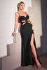 Embrace the epitome of sophistication with the Cinderella Divine CH129 masterpiece. This gown flatters your figure with its sleeveless bodice adorned with a graceful sweetheart neckline. Adjustable spaghetti straps add versatility, leading to a mid-open back secured with a zippered closure. Multiple intricate cutouts at the midriff enhance the gown's allure, adding a modern and daring touch. The sheath skirt elegantly reveals a daring high slit, infusing the design with a hint of allure. It extends gracefully to a full-length hem with a sweep train, adding a touch of grandeur and drama to your every step.