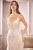 Embrace the epitome of timeless elegance with the Cinderella Divine CDS401 gown. Its delicate beaded spaghetti straps gracefully adorn your shoulders, leading to a plunging V-neckline adorned with intricate beadwork and a sheer inset that exudes allure. The low open back adds a touch of sophistication, while the zipper closure ensures a secure fit. The masterpiece of this gown lies in its mermaid skirt, where intricate beadwork and godet detailing create a stunning silhouette that gracefully flares into a breathtaking train. As you walk down the aisle, the train adds a touch of drama and grandeur to your special moment. Radiate timeless elegance and create unforgettable memories in the enchanting Cinderella Divine CDS401 gown.