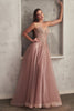 Step into a realm of elegance and allure with this captivating strapless ballgown. Featuring an A-line silhouette, this exquisite gown boasts an intricately beaded bodice that shimmers with a hint of sparkle. The plunging neckline adds a touch of allure, while the sheer boned bodice ensures a flattering fit.