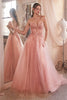 CM382 Ladivine Rose Gold Strapless Beaded Evening & Prom Dress Rose Gold