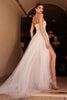 Step into the spotlight as a radiant vision in the enchanting Cinderella Divine A1071W bridal gown. This breathtaking creation is adorned with exquisite beadwork and intricate embroidery, exuding elegance and allure. The strapless design features a plunging sweetheart neckline enhanced by a sheer inset, adding a touch of sophistication. The corset-styled back creates a flattering silhouette, while the ethereal tulle skirt gracefully parts with a slit, revealing a hint of playfulness. The gown concludes with a sweeping train, adding an element of grace and beauty to your grand entrance. This masterpiece captures the essence of romance and style, ensuring you'll leave an unforgettable impression on your special day.