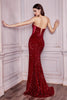 Make a grand entrance in the enchanting Cinderella Divine CH151 gown. This sparkling masterpiece features a fitted bodice embellished with shimmering sequins, creating an eye-catching focal point. The strapless V-neckline and alluring side sheer panel add a touch of sophistication and allure. The lace-up tie at the mid-open back provides a customizable fit, while the full-length sheath silhouette gracefully flows into a captivating sweep train. Radiate elegance and confidence in this scintillating gown that will turn heads wherever you go.