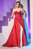 Embody elegance and glamour in the Cinderella Divine CD252C gown. Its corset boning bodice accentuates your curves, while the cowl neckline adds a touch of allure. Shimmering glitter embellishments adorn the bodice, creating a sophisticated and eye-catching effect. Delicate spaghetti straps provide support and lead to a lace-up tie closure at the back, allowing for a perfect fit. The A-line silhouette of the skirt flows beautifully from the natural waist, culminating in a sweeping train and a captivating high leg slit. Showcase your beauty and style with refined charm in this stunning gown.