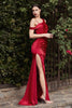 Steal the spotlight in this elegant evening gown by Cinderella Divine. Its exquisite soft ruching and fitted bodice effortlessly capture attention, while the asymmetric neckline and cold-shoulder sleeves add a contemporary touch. The V-shaped back and cutout detail, secured with a back zipper closure, provide an elegant and modern flair. The sheath skirt boasts a high slit that adds a hint of allure, flowing gracefully into a sweep train that leaves a lasting impression. Perfect for any special evening occasion, this gown will make you feel like a princess.