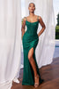 Indulge in the epitome of glamour with this fitted hot stone satin gown from Cinderella Divine. The corset bodice, adorned with shimmering hot stones, sculpts your figure to perfection. The flowing glitter stretch satin skirt cascades down your body, creating a captivating silhouette. The gathered butt detail and thin straps enhance your curves, while the leg slit adds a touch of allure. Whether you're attending prom or a special event, this exquisite gown will turn heads and make you the star of the night.
