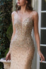 Plunging V-Neck Mermaid Prom Gown by Royal Queen NAVY/MULTI