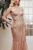 CM382 Ladivine Rose Gold Strapless Beaded Evening & Prom Dress Rose Gold