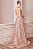 CM382 Ladivine Rose Gold Strapless Beaded Evening & Prom Dress Rose Gold