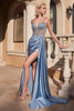 Prepare to steal the spotlight in this captivating satin gown. The ethereal stretch satin fabric drapes effortlessly, creating a flattering silhouette with a touch of sophistication. The intricate beading on the bodice adds a touch of glamour, while the thigh-high slit and gathered booty detail exude allure. The side sash cinches the waist, accentuating your curves. Thin straps provide a secure and stylish fit, allowing you to move with confidence and grace. Whether you're attending prom or any other special occasion, this gown will turn heads and leave an unforgettable impression.