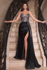 Ladivine Off Shoulder Fringe Prom Dress Beaded Slit Evening Gown CC324 Black/Nude