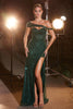 Ladivine Off Shoulder Fringe Prom Dress Beaded Slit Evening Gown CC324 Black/Nude