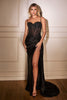 Ladivine Off Shoulder Fringe Prom Dress Beaded Slit Evening Gown CC324 Black/Nude