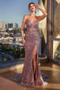 CM382 Ladivine Rose Gold Strapless Beaded Evening & Prom Dress Rose Gold