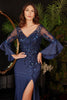 Radiate an unforgettable presence with the Cinderella Divine 9247. This exquisite gown captivates with its mesmerizing glitter embellishments and intricate floral sequin design. The fluttering sleeves add a touch of grace, while the sheath silhouette gracefully extends into a sweeping train, enhancing your allure. The low V-cut back adds a hint of sophistication, and the zipper closure ensures a perfect fit. Embrace the elegance and charm of this ensemble, a true showstopper for any special occasion.